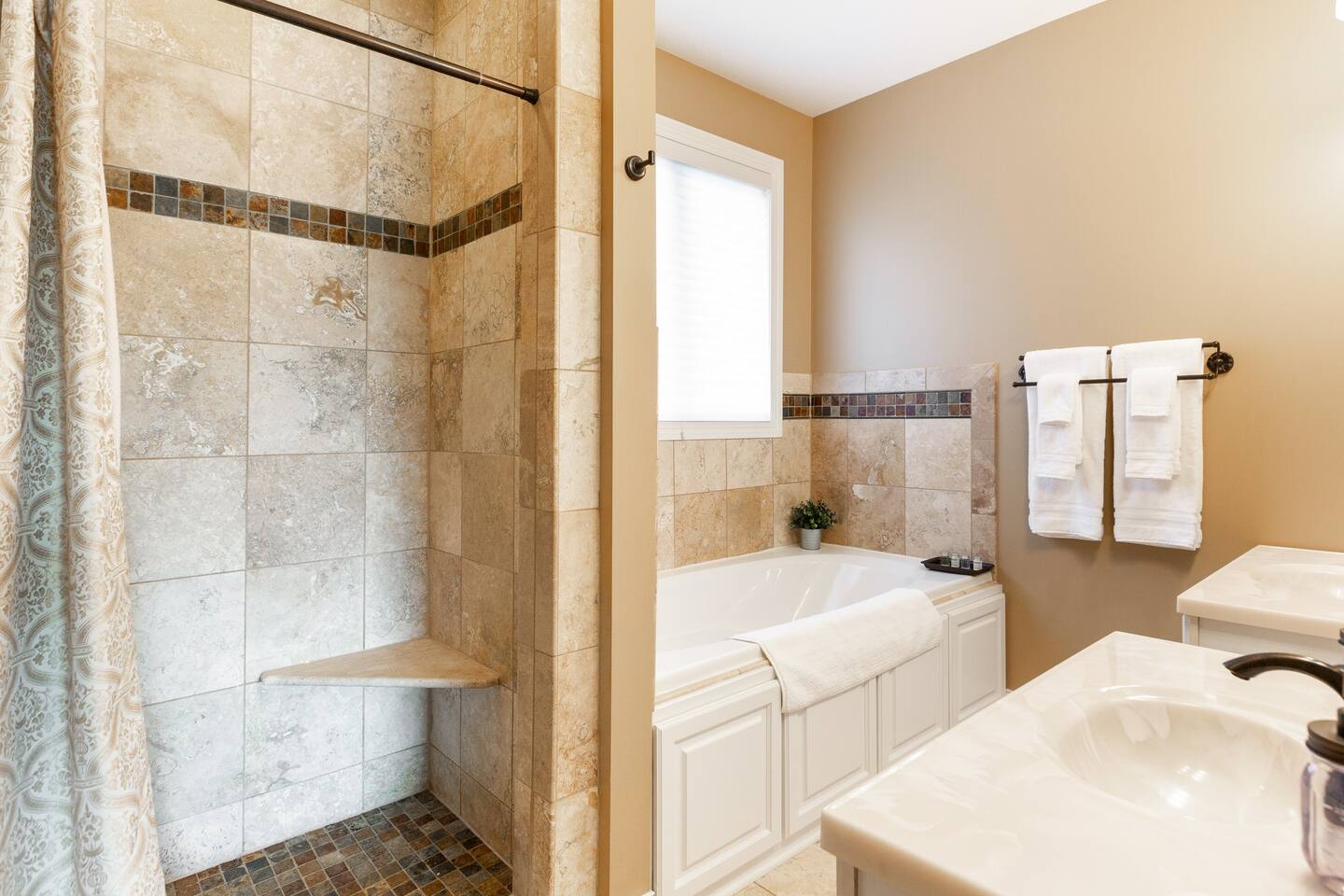 There is parking for up to 8 cars in the garage and driveway. The neighborhood has extensive walking and biking trails.