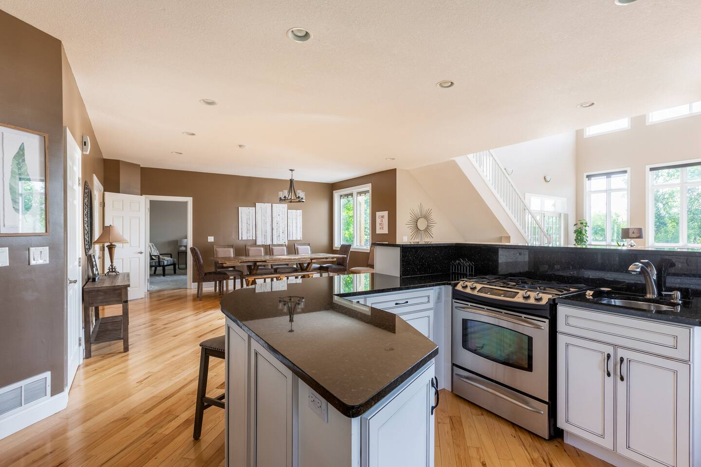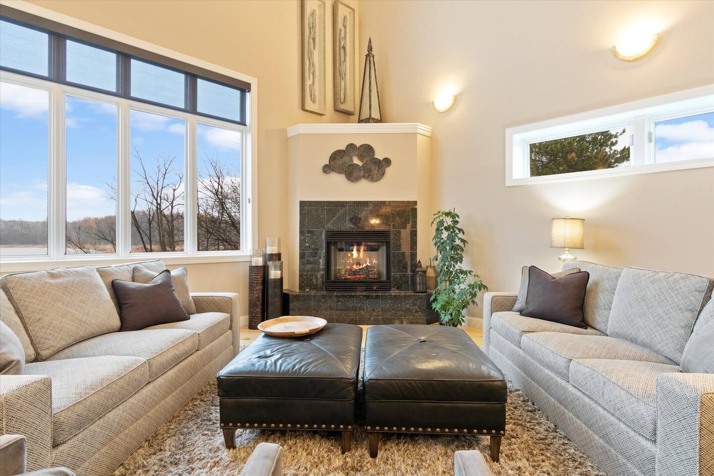 Amazing spacious property with Lake View! Gather your friends, or bring the whole family to this beautiful home. This retreat has a spacious open floor plan with two owner's suites, a home gym, a sauna for two, a home theater space, access to two lakes, one block from a public beach on Lake Minnewashta, and a park with a playground, tennis court, and pickle ball courts.